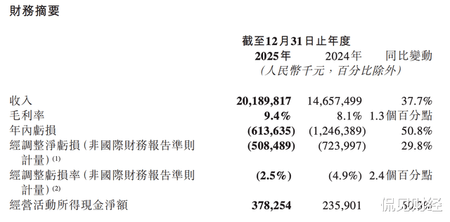 3月27日,港股最大的出行平台之一曹操出行发布了上市以来的首份年报。财报显露,2025年,曹操出行结束营收201.9亿元东谈主民币,同比增长37.7%;归母净蚀本6.35亿元,年内蚀本6.14亿元,同比扩大50.8%;经缓助净蚀本额5.08亿元,同比扩大29.8%;毛利率为9.4%,上年同期为8.1%。
