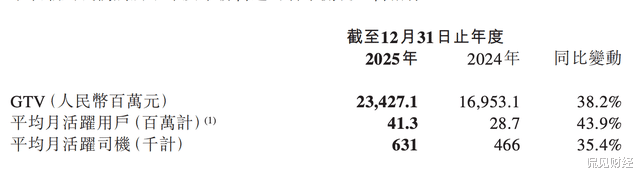 财报显露,2025年曹操出行平均月活跃用户数达4130万,同比提高43.9%;平均月活跃司机数达63.1万,同比提高35.4%。