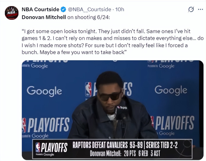 北京工夫4月27日,NBA季后赛,骑士89-93惜败猛龙,大比分2-2平。这场比赛骑士队一度启航点猛龙9分,在小节还剩1分54秒骑士队齐还启航点5分,但多诺万-米切尔行为这支球队的中枢承接犯了初级的诞妄导致好局被糟跶。
