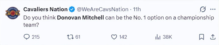 赛后骑士媒体《骑士国家》发出灵魂拷问:你认为多诺万-米切尔能否成为一支冠军球队的头号中枢球员呢?