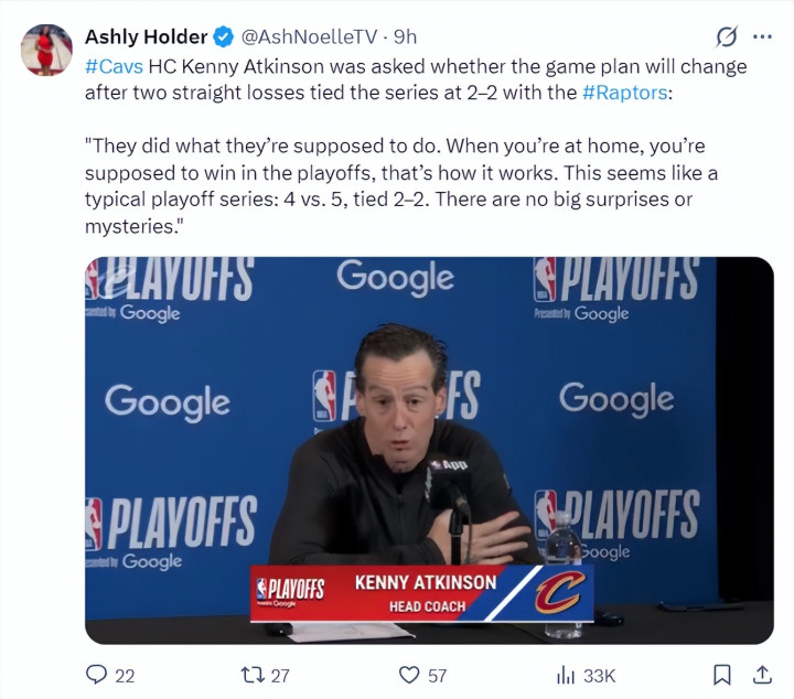 阿特金森赛后这么说说念:猛龙完成了他们该作念的事天博体育app下载,当你身处主场时就该得手,这是季后赛的限定。这轮系列赛看起来便是经典的季后赛对决,如今两队2-2要拼天王山莫得什么不测的。(阿特金森并莫得对米切尔发难)