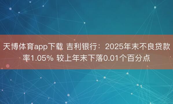 3月20日金融一线音问,吉利银行当天发布2025年报。请问指出,2025年,该行捏续强化风险计谋前瞻研判及敏捷调度,积极鼓动存量钞票风险早期预警与化解,钞票质地举座幽闲;捏续优化零卖贷款钞票结构,减值准备计提相应减少,风险抵补材干无间保捏细腻。2025年末,不良贷款率1.05%,较上年末下落0.01个百分点,全年不良贷款生成率61.63%,同比下落0.17个百分点;拨备掩饰率220.88%,较上年末下落29.83个百分点;拨贷比2.33%,较上年末下落0.33个百分点。 吉利......