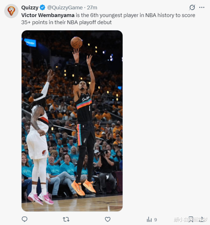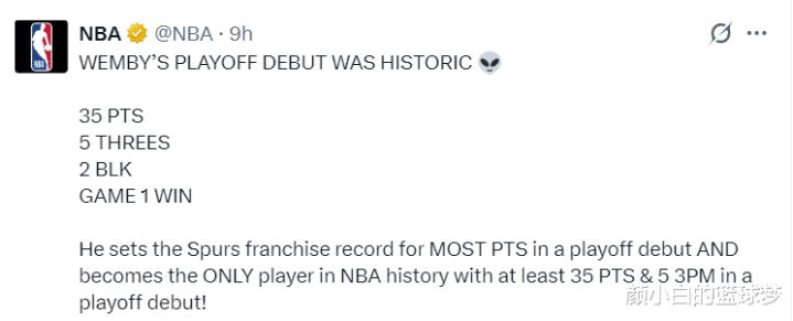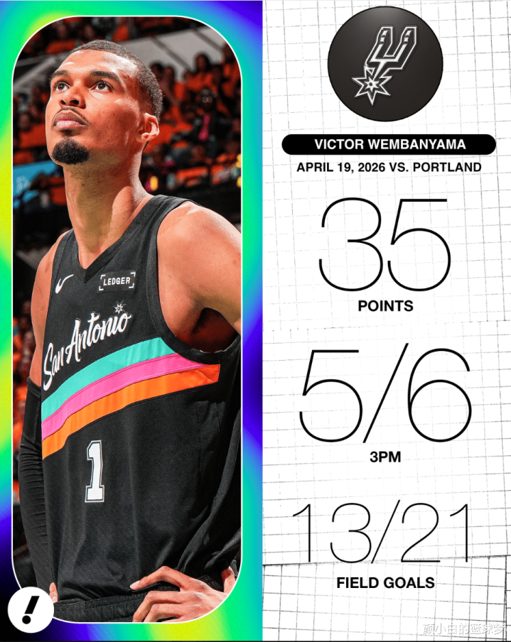 1.文班亚马首秀35分越过邓肯的32分,天博体育成为马刺季后赛首秀得分王;