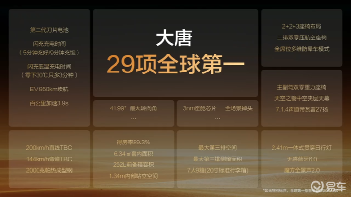 内饰方面,比亚迪大唐搭载3nm座舱芯片,给与2+2+3座椅布局。成就方面,新车搭载主副驾双零重力座椅、二排双零压航空座椅、7.1.4声说念帝瓦雷27扬、太空之镜中空夹层天幕以及全席位多维防晕车花式等。