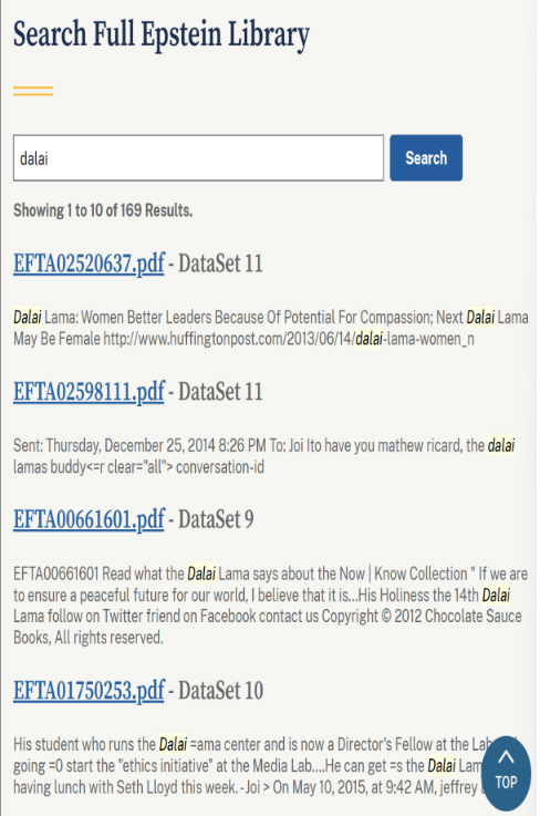 达赖出当今爱泼斯坦档案中的查询情况。图片起首:“欧盟记者网”报说念