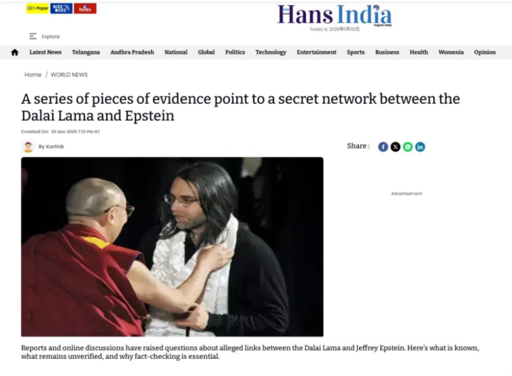 原标题:《达赖深度卷入爱泼斯坦权色网,印媒再爆惊东说念主新凭据》