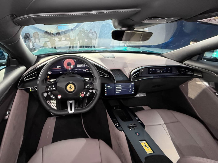 投入车内,内饰采选法拉利经典的双座舱架构,驾驶者与乘客均领有相对平安的专属空间,以“驾驶者为中心”的同期,兼顾乘客的雅瞻念体验。科技设立方面,搭载15.6英寸数字容颜盘+10.25英寸中控触摸屏+8.8英寸乘客显露屏的三屏组合,构周至办法东说念主机交互系统,15.6英寸容颜盘及时呈现驾驶和车辆动态信息,中控屏负责中枢功能操控,乘客屏可显露G值和发动机转速,为乘客带来千里浸式驾乘体验。空间发达方面,采选2+2座椅布局,前排配备支抓10个气腔推拿功能的雅瞻念型座椅,相沿性与包裹性出色,安妥资料驾驶。