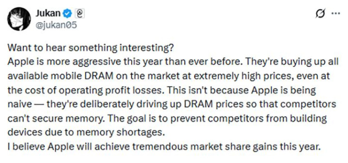 那以苹果来说,此前闻明分析师郭明錤就指出过,在这个DRAM芯片供应漫天要价的时间,苹果这种科技巨头不错通过松手部分利润、何况不提高最终售价的神志,来借此大幅提高商场份额。